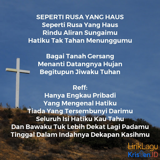 Seperti Rusa Rindu Sungaimu Lyric. Back to * kaulah kekuatan dan perisaiku. Seperti rusa rindu sungaimu jiwaku rindu engkau kaulah tuhan hasrat hatiku ku rindu menyembahmu.